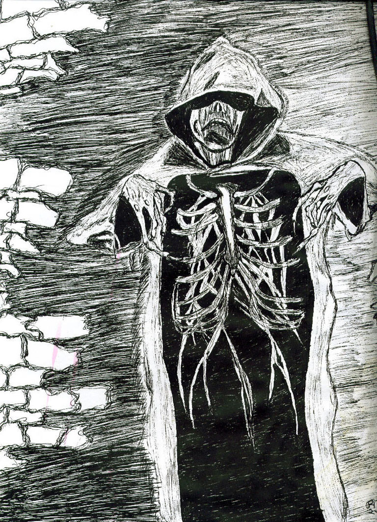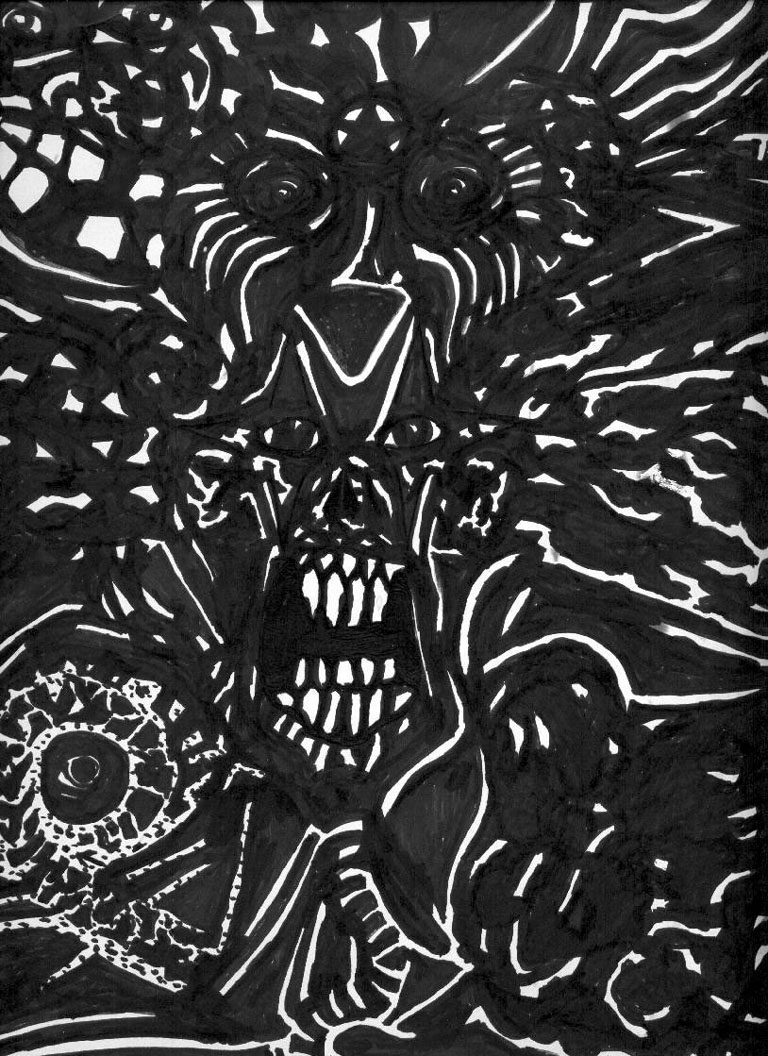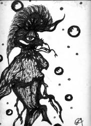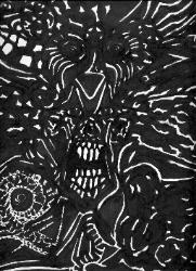 | Smallfry, An astoundingly unique sketch artist, has been contributing his talents to the Utah Valley for the past twenty years. His work has a very dark, lowbrow appearance that suggests tortured souls and the evils hiding in the depths of those souls. Reflecting upon the troubles in his life, he began to write poetry and songs. These were later translated in 1994 with a musical backdrop called The Lunegore Project. The album was called "Smallfry Speaks -AKA- Sounds for Genitorture" and was created as an audio diary for Smallfry. There were only two master copies made. Thee Art of has acquired one of these copies and has permission has never had the opportunity to hear it. Estimated - 2008 The album utilizes a lot of voice processing and all around progressive noise. His lyrics range from comedy to tragedy, from ethereal sarcasm to complete anger, full of honesty and human drama. We also have these few rare sketches to share and would love to get more. |